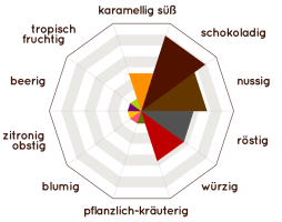Aromenspiel: röstige Noten, feinherbe Schokolade, Nüsse und Gewürze von dunkler Tiefe